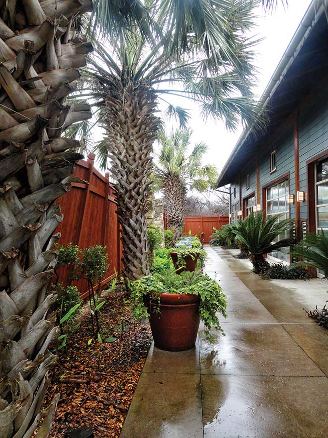 Seminal to every spa experience is the natural environment, especially the spa grounds, which are designed to provide tranquility. Palm trees, pecan trees, crape myrtle, and tons of lush flowers and herbs were just beginning to bloom during our early March visit. So another highlight was the Garden Tour, offered weekly by longtime groundskeeper Trisha Shivey. For an hour, she regaled us with anecdotes and samples from her amazing edible garden. Did you know there is such a plant as chocolate peppermint? Or that you should always buy organic celery because the non-organic variety is heavily sprayed? She walked us around the abundance of her garden, offering tastes of borage, stevia and snapdragon, and explained that its herbs and flowers are used everywhere around the spa: in food, floral arrangements and art classes like the one we attended to make dream pillows and sachets.