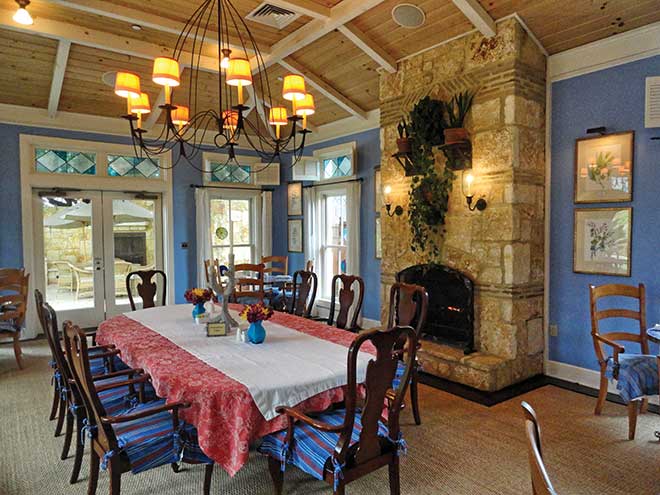 The Lakehouse Spa, built in 2004, is pretty magnificent, too, with its impressive ‘Blue Room’ where guests wait to be called for their treatments. No talking allowed, but relaxing is mandatory (despite the daily stack of The New York Times). Its curtains, floor-to-ceiling along three walls, are hand-painted with flowers—each panel a different variety—so that when they are closed at night, guests can still be surrounded by a beautiful garden. My ‘Tour of Texas’ treatment was a threefer: a body scrub, a wrap and a massage. I chose it because it was Texas-sized: 110 minutes of prickly pear exfoliation, an agave moisturizing wrap and a full-body massage.