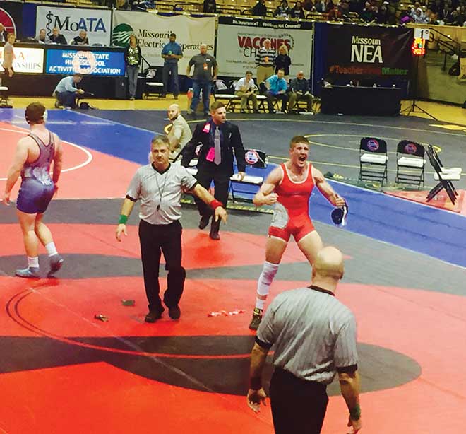 Chris Wilkes, who finished the season at 49-1, won at 125 pounds, winning his championship match over Troy Kyser of Knob Noster by technical fall, 24-9. Austin Smith won at 132 pounds, winning by a 3-2 decision over Keven Steeby of Mid-Buchanan in the finals. Smith finished the season with a 46-6 mark.