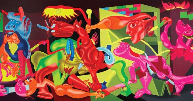 Pictured at top: Saul’s Guernica by Peter Saul sold for $575,000, setting a world record for the artist at auction. The painting was offered from the estate of Robert and Lois Orchard of St. Louis.