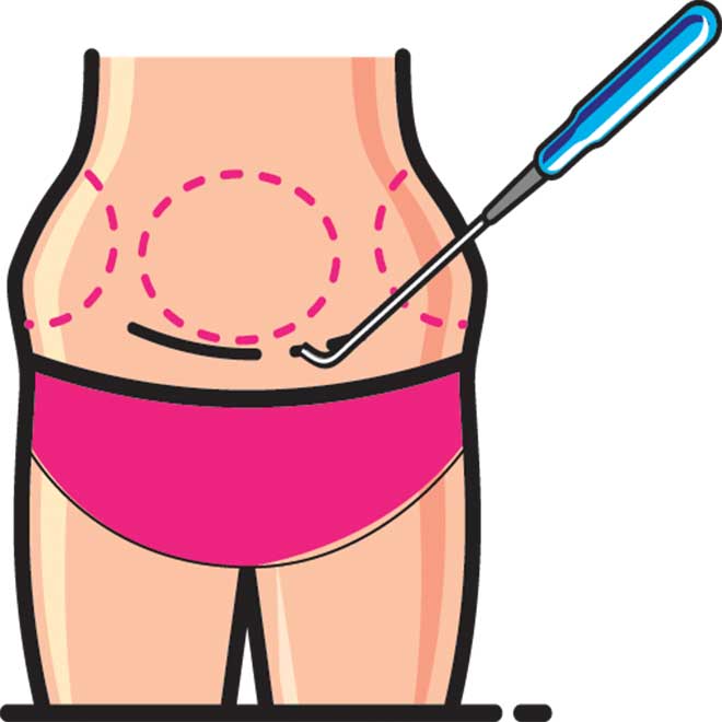 Cryolipolysis, also known as cool sculpting, is a noninvasive alternative for fat removal that applies a cold pad to the body. “A probe cools the fat to a low temperature, and the body breaks down and absorbs the fat,” Kaswan says. “That is only for specialized areas that do not have an excessive amount of fat.” Koo doesn’t recommend this option for back fat, because she says it’s too thick and dense.