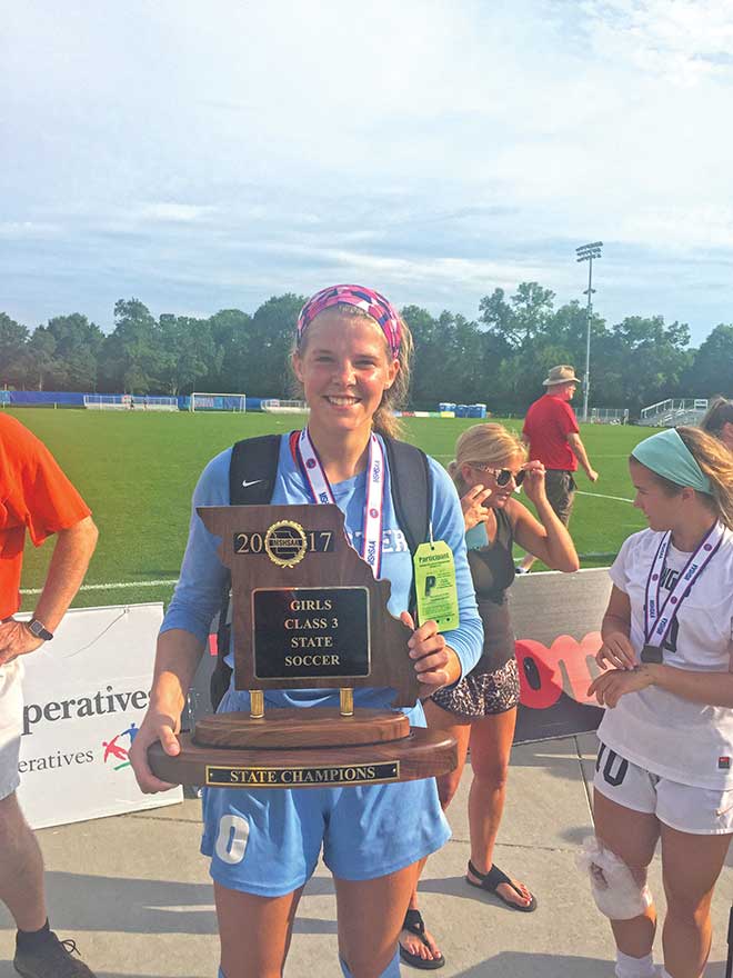 Despite a 24-1 record, Webster Groves was the distinct underdog when it took on top-ranked Notre Dame de Sion in the Class 3 championship game June 3 in Kansas City. But Webster had goals from freshman Izzy Heintz and sophomore Gretchen Skoglund, and the Stateswomen held on for a 2-1 victory. It was an interesting road to the state championship. Webster needed two overtimes to defeat Visitation in the sectional round and penalty kicks to beat Fort Zumwalt South in the semifinals. Sandwiched between those nail-biters was a 5-0 victory over Cape Central in the quarterfinals.