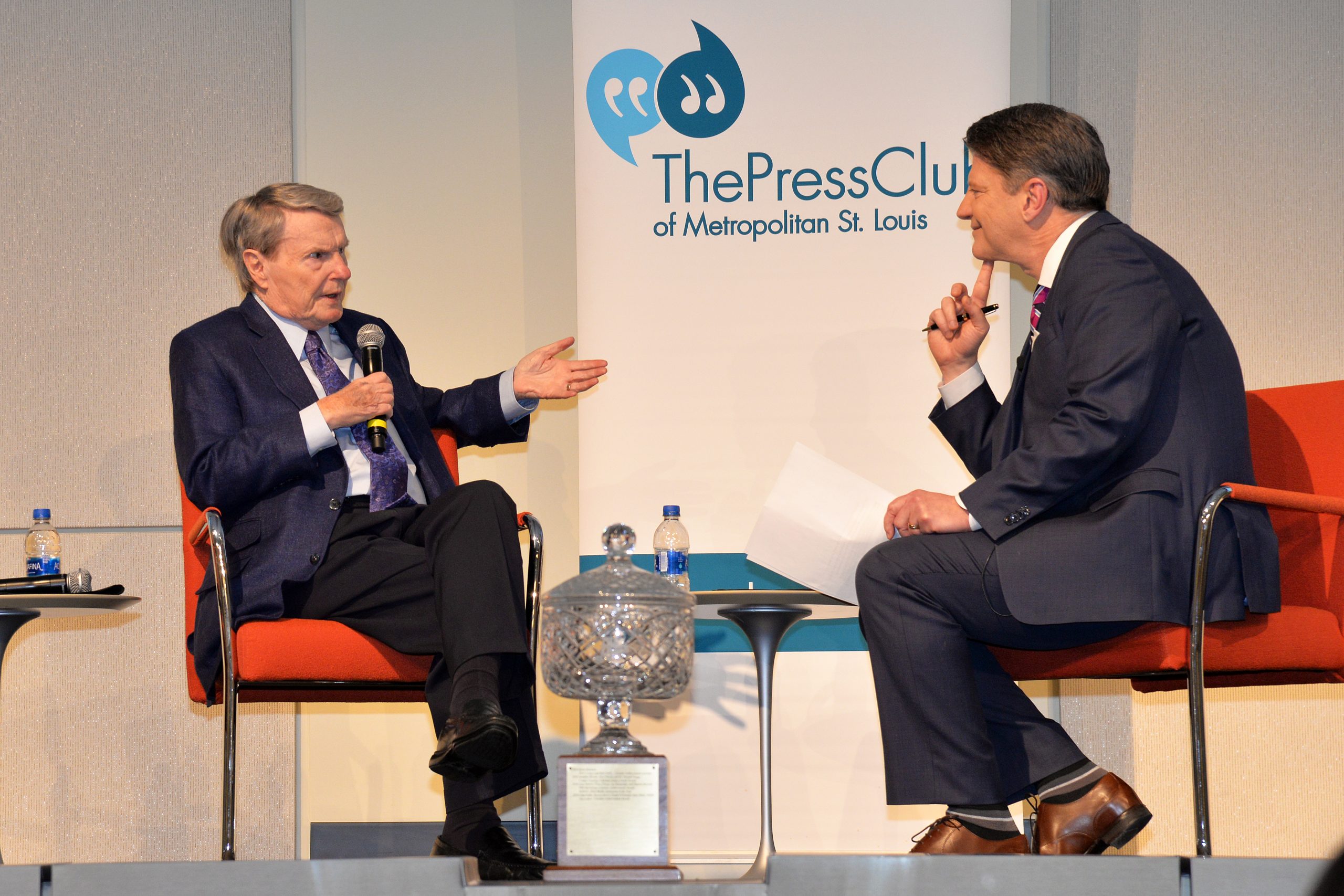 [WHAT] Media Persons of the Year Awards Gala [WHERE] Edward Jones North Campus [WHY] Annual awards presentation [WHO] Event co-chairs Tom Eschen and president Bill Greenblatt; Lifetime Achievement Award recipient Jim Lehrer, and Media Persons of the Year Betsey Bruce, Frank Cusumano, KSHE 95, Eric Mink and posthumously John Auble; emcee Mike Bush [HIGHLIGHTS] Cocktail reception, dinner, awards program.