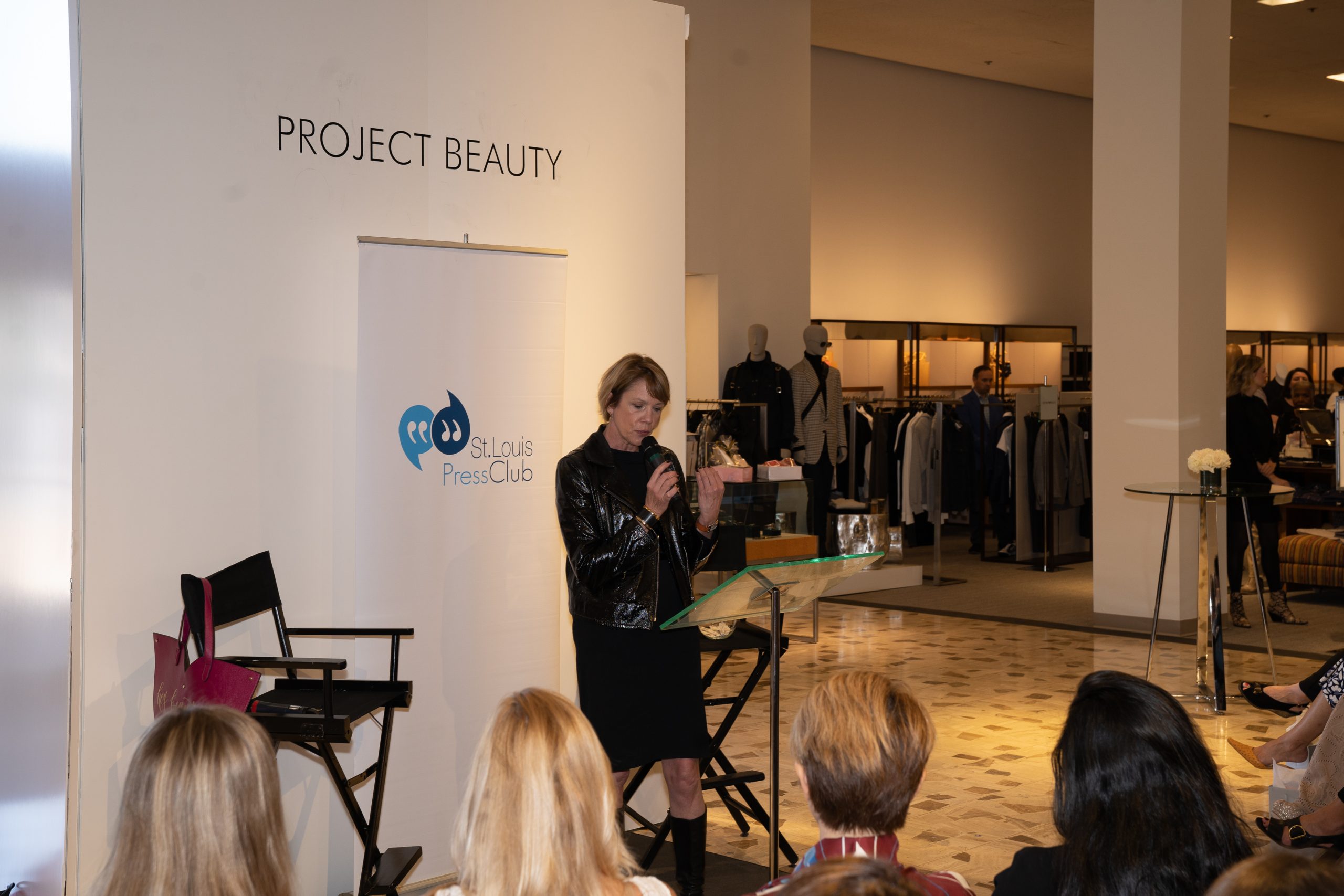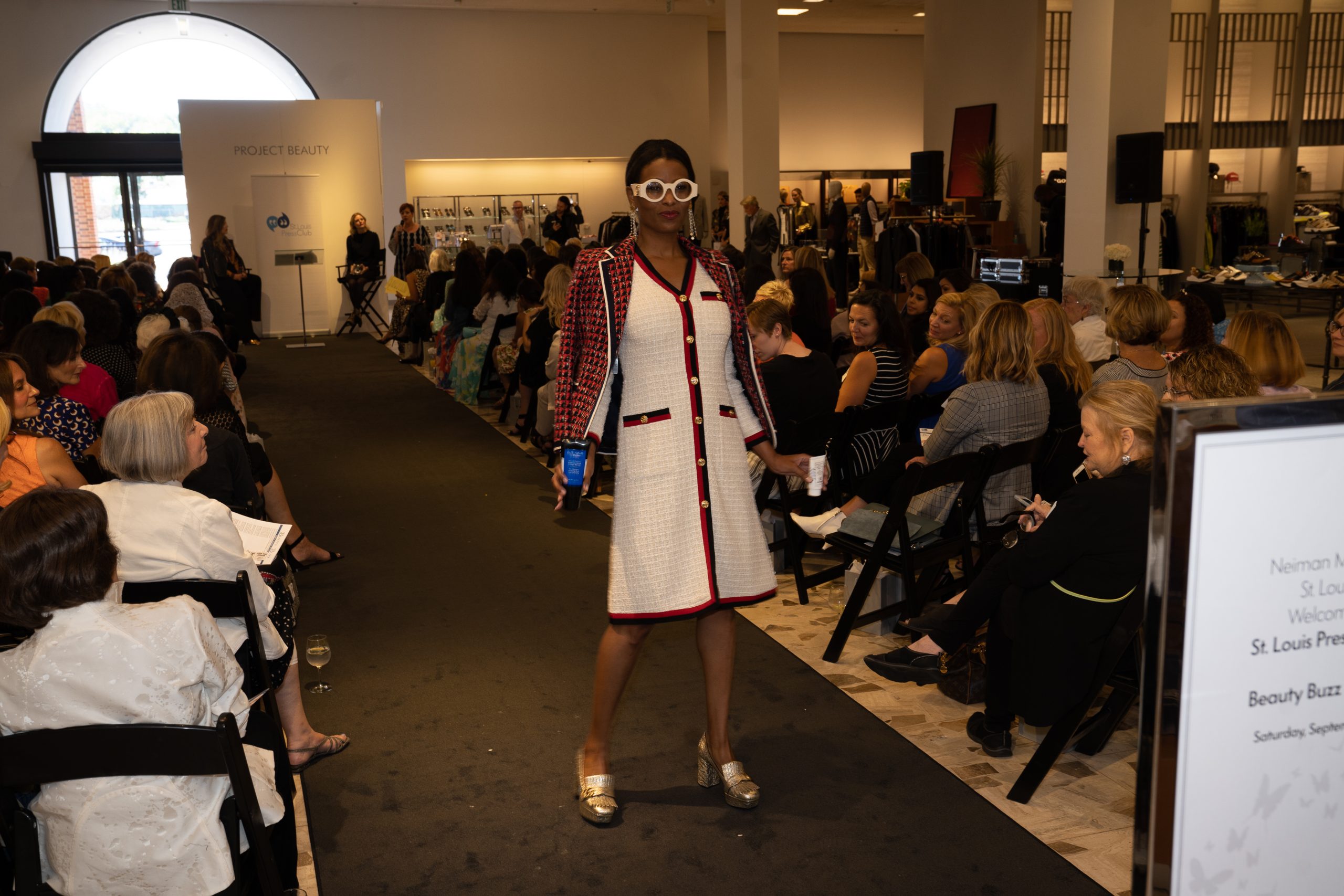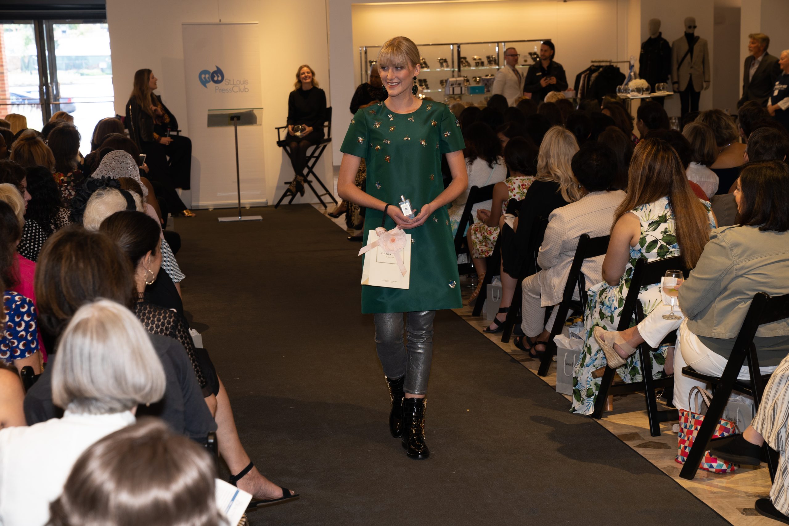 The ninth annual event at Neiman Marcus brought St. Louis fashionistas out for brunch bites and beauty tips to raise funds for journalism scholarships. A runway show delivered the latest fall fashions. [VIP Guests] event co-chairs Aisha Sultan and Ameena Sultan Khan, emcee Jasmine Huda of Fox2, Neiman Marcus VP and general manager Cheryl DiMauro, Press Club president William Greenblatt, Press Club executive director Glenda Partlow.