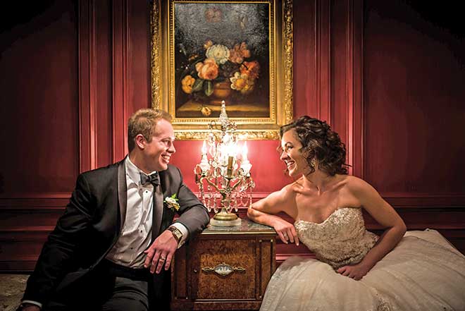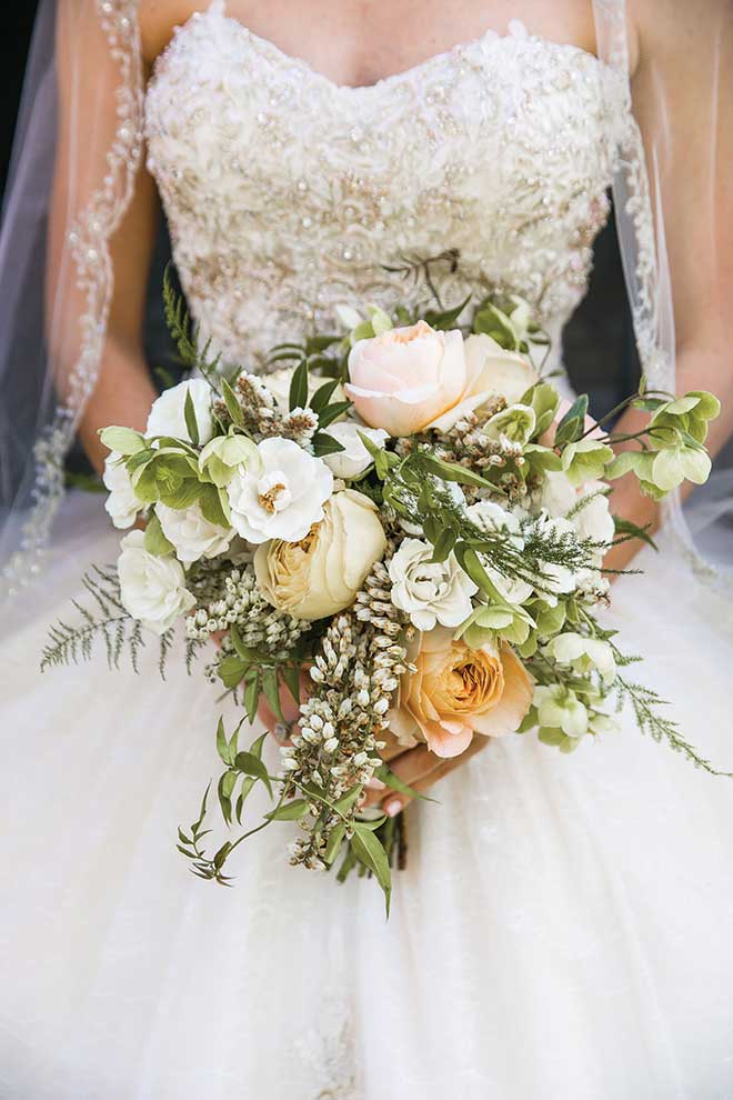 St. Louis, Grant’s home, was a perfect middle ground for out-of-towners, and the two adopted a ‘Meet Me in St. Louis’ theme, from their Save the Dates to guest baskets and trolley transportation. “Planning was a completely joint effort between my mom and Grant’s parents,” Dani says. “His mom suggested the Saint Louis Club, and I was blown away by how beautiful it was.” The focus was on friends and family and making sure everyone enjoyed the day for the celebration it was. Dani appreciated a walk with her sister before getting ready, which she says set her heart on the right path. “I remember putting on my dress and thinking, this is a day,” she says. Instead of gifts, the couple wrote letters to each other. Another meaningful touch was having two special songs performed, one ‘The Prayer,’ which Dani says she and her dad would randomly sing together in the kitchen. “It felt like a blessing over Grant and me.”