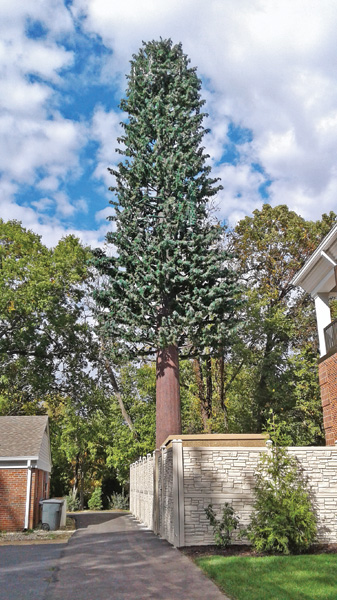 The towering evergreen looks like it could have been plucked from a mountainside in the Pacific Northwest’s coastal range, the Cascades, and transplanted in Ladue. But it’s an impostor. A little too symmetrical, it’s situated right behind Ladue’s new fire station that opened this year at Price and Clayton roads (right across from what was the late, lamented Busch’s Grove and is now PALM Health). It’s a cell tower, hiding in plain sight, decorated with faux-liage. Actually on the Village Lutheran Church property, its ‘needles’ camouflage all sorts of the sticky-outty antennae and other space-age gadgetry required to transmit cellular signals. The tubular metal ‘trunk’ is painted to resemble the real thing, many different shades of taupe, ochre … well, brown … to impersonate bark. You have to really look at it before realizing it’s out of the ordinary, but mimicking any deciduous species such as the mighty oak or average sycamore would be impractical. Plus, even indigenous evergreens have limbs of varying sizes that branch out every which way. That would make the tower ungainly in appearance, naturally kind of random—well, unscientific, unless one were to employ the type of science favored by the EPA or select school districts throughout Kansas. We’re talking physics and engineering here, not botany. The city requested an aesthetic approach, and we think the result is attractive, as camouflaged cell towers go. If not worthy, at the very least, of a snicker. Maybe even an LOL or VBG. At least it’s not another ‘left’ coast variety, say, a palm tree from L.A. or a saguaro from Arizona.