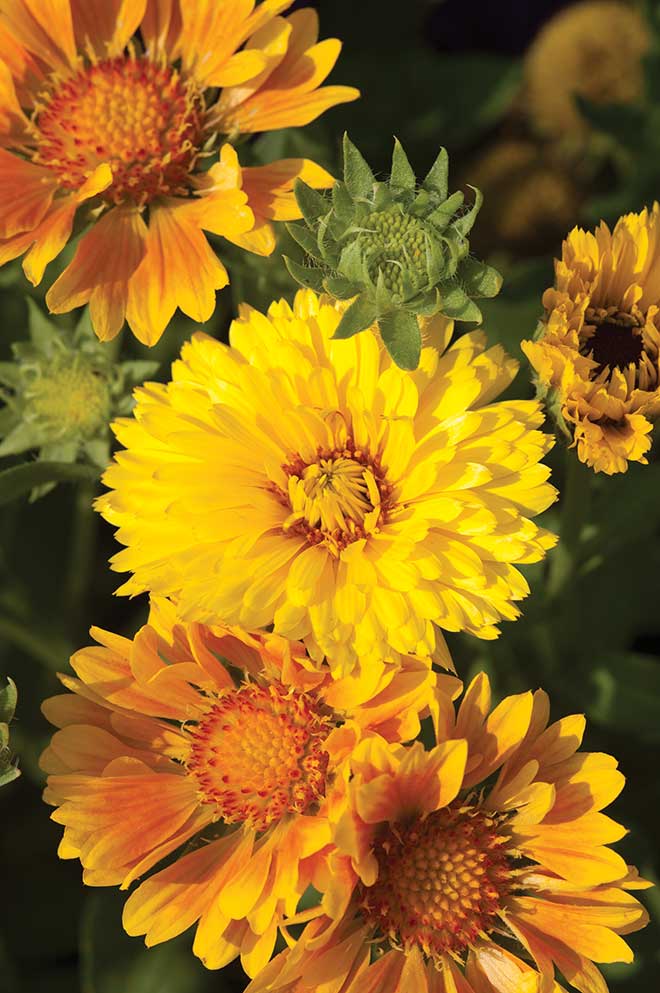 calendula» Referred to as ‘pot marigolds,’ these grow well in containers. They are annuals, easily grown from seed. To ensure a long flowering season, pick the flowers every few days.