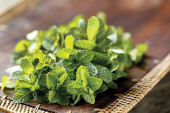 mint» For a refreshing and uplifting flavor, go with peppermint or spearmint. Or try a mint with a twist, like chocolate or sweet mint. Mint can spread like wildfire, so one way to keep it from taking over is to plant in a container and then put the container in your garden bed. This will keep the roots contained. A plus with mint: it helps soothe an upset stomach.