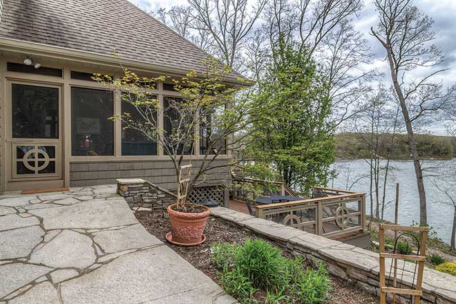 Suzanne’s favorite spot is the master bedroom with a large picture window that looks out onto the water. “We have access to our hot tub and an outdoor porch, and we always read the morning paper by the big window,” she says. There’s plenty of room to entertain in the 6,300-square-foot space, and the couple frequently filled the house, whether with family or guests for various benefits. “We’ve held concerts in our living room for the Innsbrook Institute,” Suzanne says. And being so close to St. Louis, they come in to town every couple of weeks to go to the symphony, theater or art museum. “We always notice the low roar of traffic when we stay in St. Louis,” Dave notes. “Here at the lake, we just listen to the sounds of birds, frogs and noisy critters.”