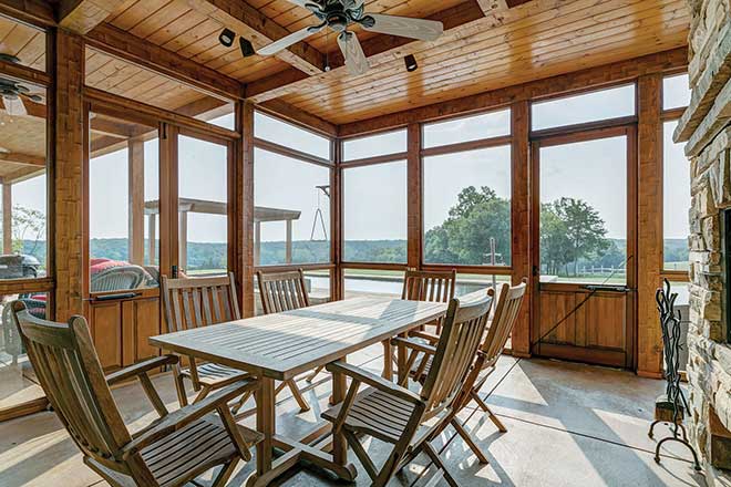 The couple always has had a main residence in St. Louis (he is a native St. Louisan, and she is from southern Illinois), and they purchased the 264 acres in Lonedell, just an hour drive from St. Louis, 11 years ago, after Dale retired as a partner at a CPA firm. He wanted to do something completely different—and the country beckoned. “Dale became caretaker of the land, and there was a cattle business already on the property, which our neighbor takes care of on a day-to-day basis,” Sharon Fiehler explains. “We built the house a year later, and it’s been our weekend retreat and my sanity-saver ever since!”