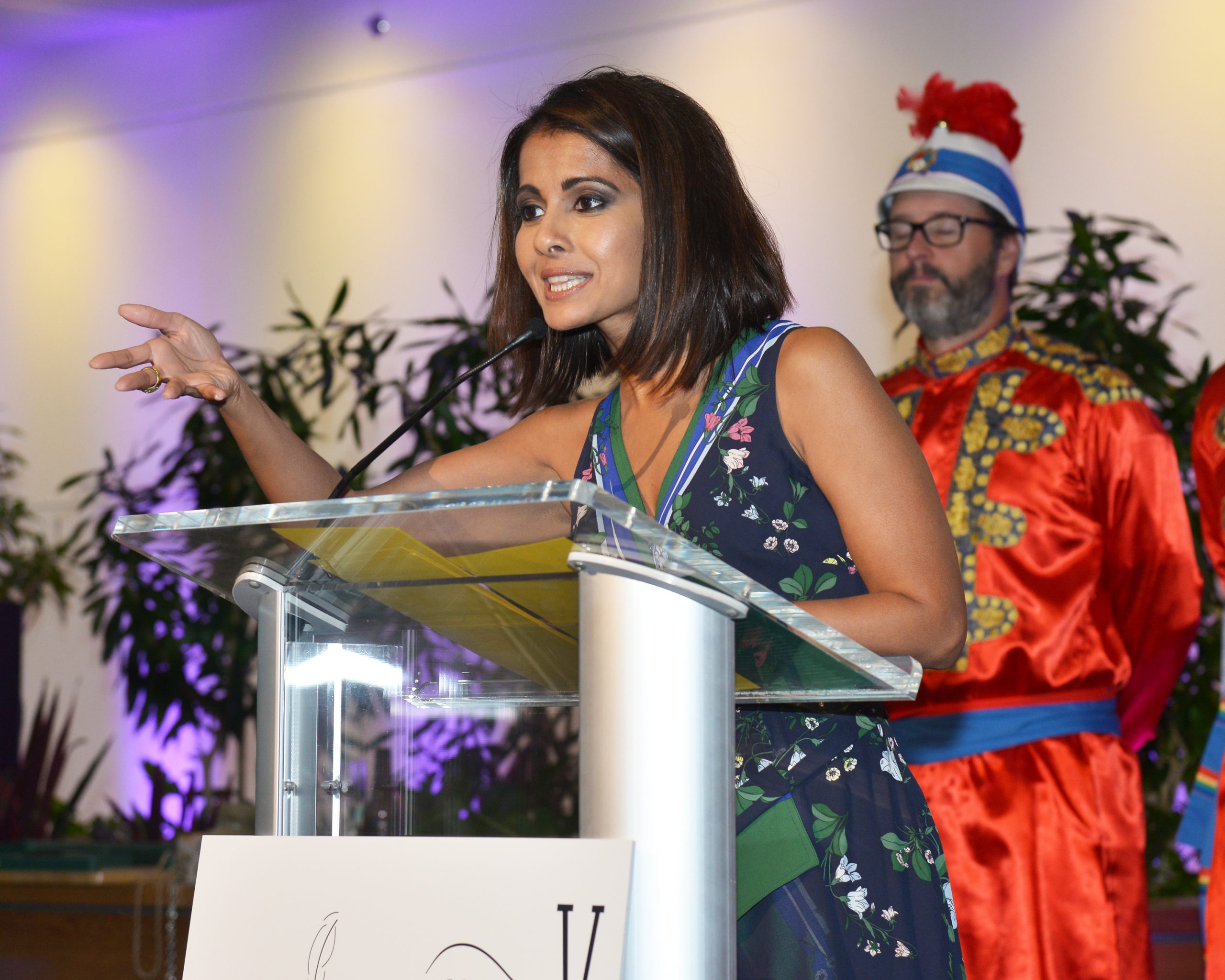 The sixth annual VP Fashion Show, themed White Gloves to Work Gloves, was held at the Donald Danforth Plant Science Center. It benefits the Veiled Prophet Foundation and its community service initiative and featured a collection of evening gowns and accessories by Alexander McQueen and Moschino, as well as gowns by Gucci and Wai Ming. [VIP Guests] Co-chairs Alden Pflager and Harriette Warren, sponsorship co-chairs Tom Donnelly and Allan Ivie IV, emcee Jasmine Huda, VP Queen Cecelia Ann Fox.