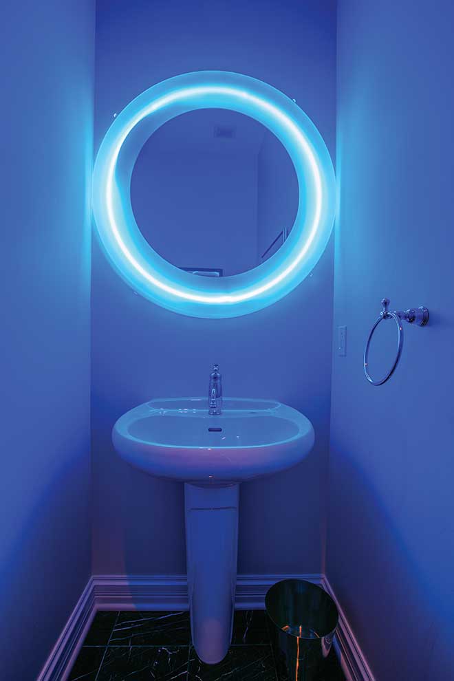 JR | I found the lighted mirror in the powder room at A Tasteful Auction for Food Outreach. It gives you an eerie glow. That’s one of the few pieces I brought over from my Kirkwood house. In the other bathroom, I have playbills framed on the walls. A lot of them are signed, and I have even more that aren’t up. I started going to New York back in 1982, when tickets to a Broadway show were around $50. I would send the playbills to the theater, and the stars would sign them and return them to me. I figured if I was paying that much to see a show, I should save something from it. The world has changed now—tickets are about $150, and the actors don’t send anything back! I love the theater because it gives you such a good feeling. So every time I leave my bathroom, I’m in a good mood.