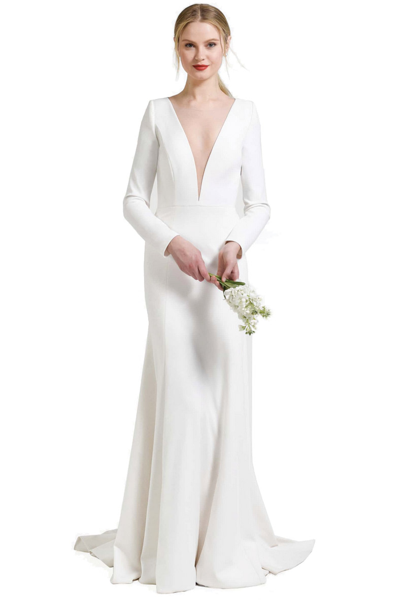 Maybe it was Meghan Markle’s royal wedding gown or maybe brides-to-be just needed a break from lace. Whatever the reason, solid white gowns are becoming the dress du jour. Rather than emphasizing the fabric, the dress is all about the construction and details. Paying attention to sleeve length, unique necklines and cut-outs, the attention is on the structure and fit of the gown rather than a busy pattern. Best of all, solid white gowns are a bit more subtle, keeping the focal point on the bride and not the dress!