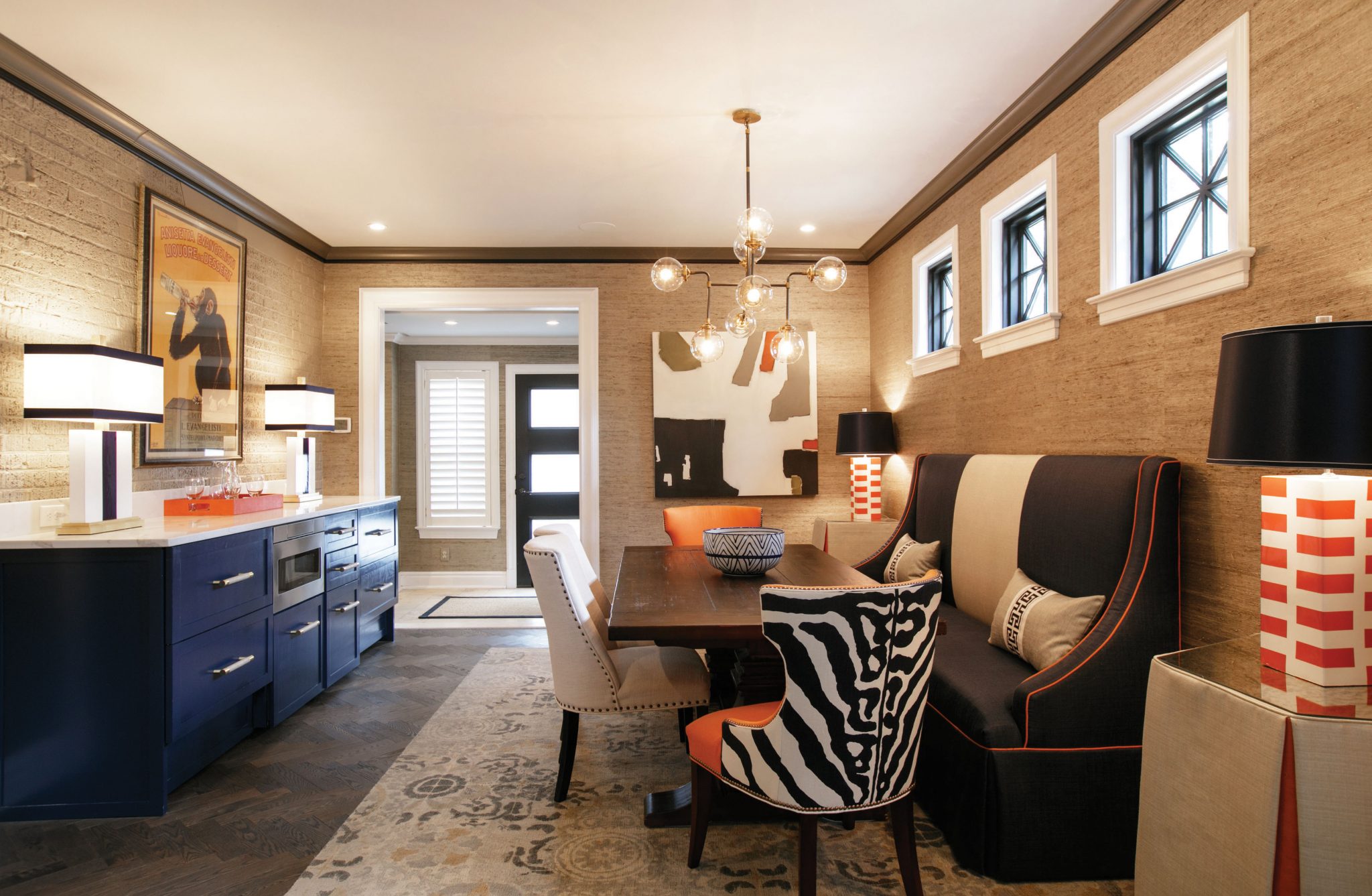 AB | I always approach design with the idea that when the project is done, it doesn’t look like I’ve been there. It’s very important to me that the home reflects the owner’s personal style. Mary and I work well together because we both have the philosophy that if you really love something, there’s a place for it in your home. Mary loves whimsy, from the wallpaper in the kitchen to the paint on the inside of her drawers. There’s an element of surprise and attention to detail, which is a joy to work with. Most people hire designers to pay attention to the little details, but when you have a client who loves them equally, it’s a match made in heaven.